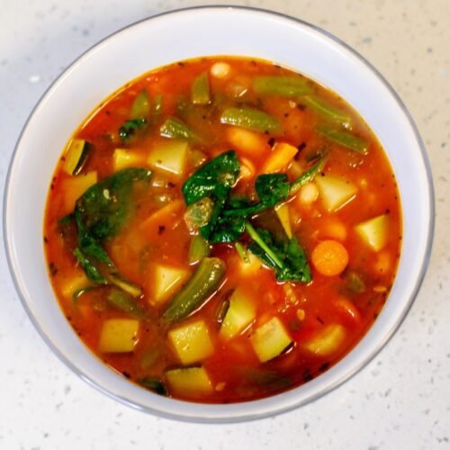 There’s something magical about a pot of vegetable soup simmering on the stove. It’s warm, comforting, and nourishing without being heavy. It’s the perfect way to make the most of whatever vegetables you have on hand. This recipe is my go-to when I need something satisfying but don’t want to fuss with meat, spend a fortune on ingredients, or spend all night in the kitchen. In fact, you can go from washing your vegetables to ladling steaming bowls of soup in about 45 minutes — which is about the same time it would take to order delivery and wait for it to arrive, only this is far healthier and far more budget-friendly.